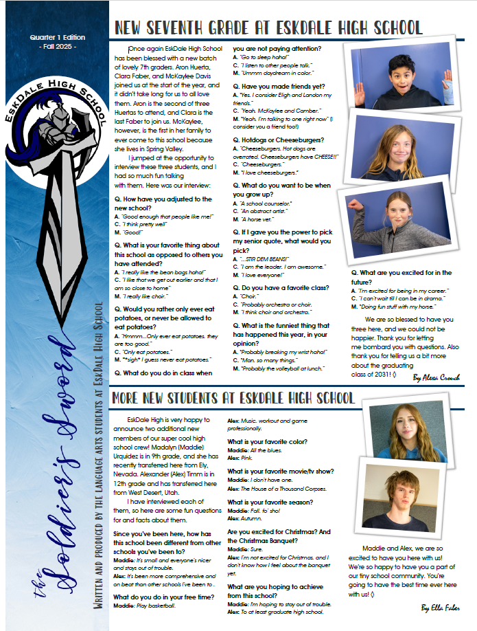 Our mission at EskDale High School is to provide students with the educational opportunity to become informed and responsible citizens engaged in life-long learning!